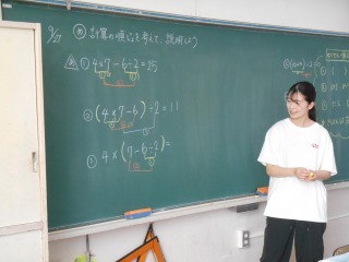 ( )のある四則計算の学習です。複雑な計算の順序を守りながら解答をしていました。
