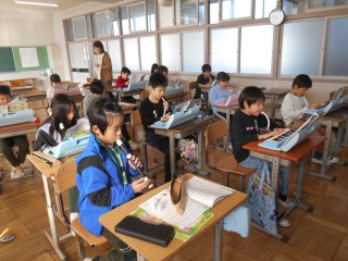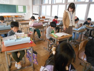 リコーダーと鍵盤ハーモニカで同じ曲を演奏していました。熱心に練習していました。