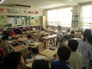 友達のがんばっているところや友達にしてもらってうれしかったことなど、友達のすてきを見つけてプリントに書きました。