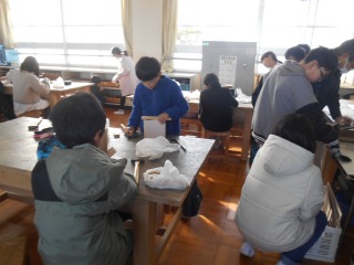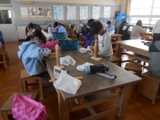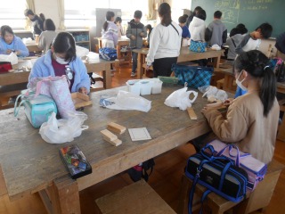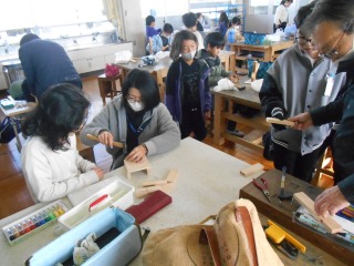 木工作品を作っていました。のこぎりや釘打ちなど、丁寧に作業を進めていました。