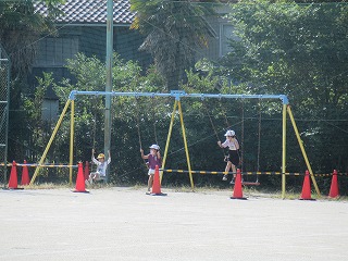 休み時間の運動場のようすです。みんな楽しそうに遊んでいます。