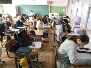 6年生のまとめのテストに取り組んでいました。これまで学習したことを確認します。