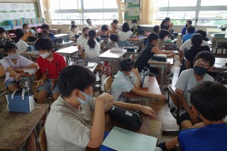 6年2組の家庭科では、4月から学習してきたことをふり返りました。心に残った学習活動をお互いに伝え合いました。