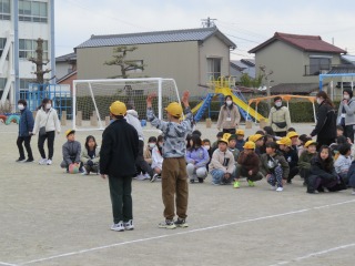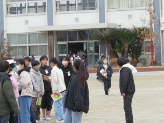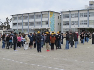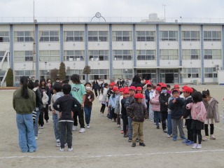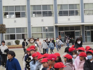 先生の指示がなくても放送の指示をよく聞き、その場で避難の姿勢をとったり、一番近い避難経路はどこかを考えて運動場へ向かったりする姿が見られました。また、下級生やクラスの子を「こっちだよー!」と呼んで集合する声も聞こえました。自分の命だけではなく、周りの人の命も大切にする行動をとることができた美和小の子どもたちは「はなまる」です。