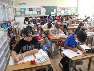 分数のたし算ひき算を学習していました。約分・通分に気をつけて計算します。