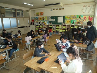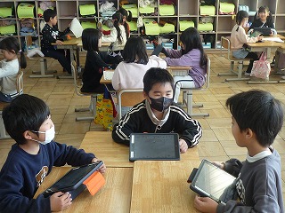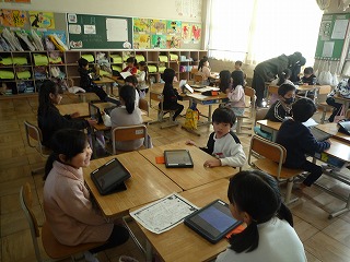 タブレットを活用して、クイズをつくり、発表の練習をしました。