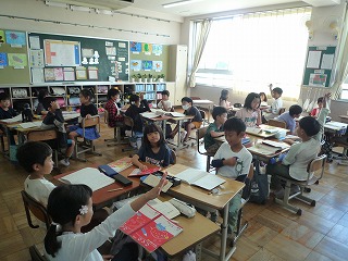 前回、物語を読み、登場人物にあてた手紙を、グループ発表しました。