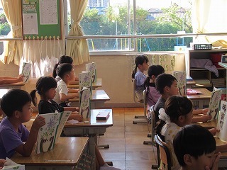 教科書の文章をみんなでそろえて、音読していました。読む姿勢のいい子が増えてきましたね。