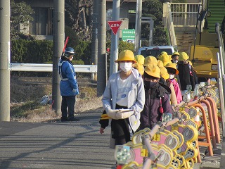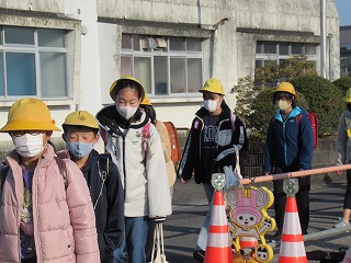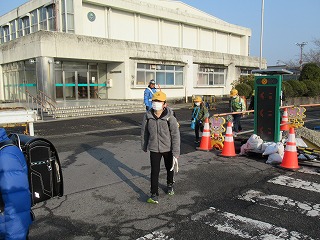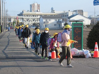 北門の通学班の登校の様子です。今日は、比較的暖かいです。