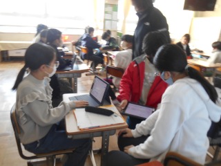 6年間の思い出を、タブレットでまとめていました。