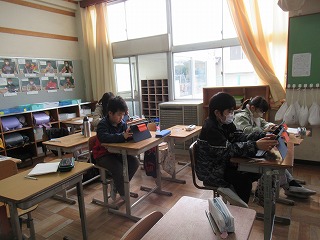 4年2組では、算数の時間、問題を解き、先生に確認してもらっていました。