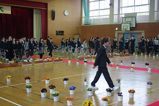 美和小学校第75回卒業式が行われました。入場の場面から、凜とした卒業生の表情がたくましく感じられました。荘厳な雰囲気の中の証書授与では、6年生の立派な振る舞いに大人っぽさを感じました。校長式辞は、小学校生活で校長先生から伺う最後の話となります。胸に刻んだことと思います。巣立ちの詩での最後の合唱の歌声は、とても素晴らしいものでした。この前向きに頑張る姿こそ、「変わらないもの」となることでしょう。ご卒業、おめでとうございます。