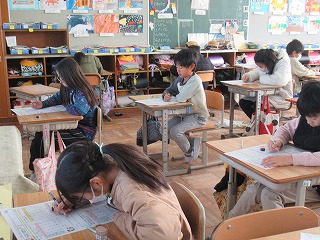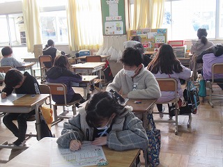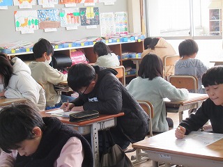 4年1組が、テストを行っていました。一生懸命、問題に向き合っていました。