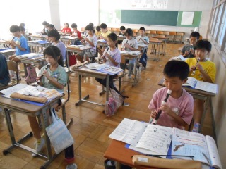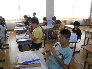 「ふるさと」をリコーダーで演奏していました。ゆっくりのペースで、運指を確認しながら演奏していました。