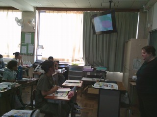 海外の国々の名前や位置を、チャンツで覚える活動をしていました。