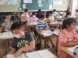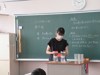 4年1組では、理科の授業が行われていました。みんなしっかりと学習に取り組み、立派でした。
