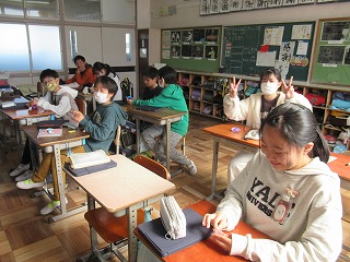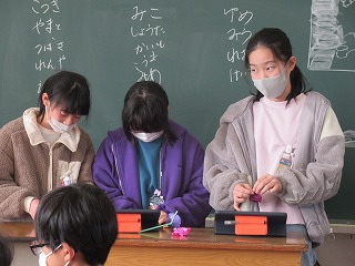 6年2組は特別活動の時間でした。タブレットで折り紙の折り方を確認しながら、さまざまなかざりを制作していました。何に使うのかな?