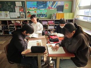 6年1組は、国語の時間でした。柿山伏の音読をどのように読むといいのかをグループで話し合っていました。音読劇の発表会が楽しみですね。