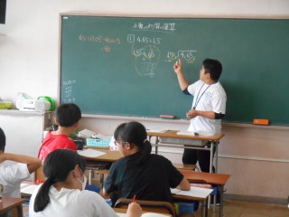 小数のわり算のひっ算を学習していました。小数点の一の取り方に注意が必要ですね。