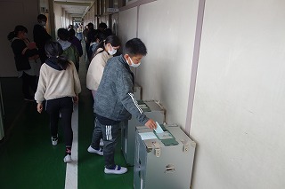 1時間目に児童会役員選挙が行われました。立会演説会は体育館からオンラインで各教室に配信されました。教室では、演説を聴いて、児童会役員にふさわしいと思う子に投票をしました。今回も投票には本物の投票箱を使いました。