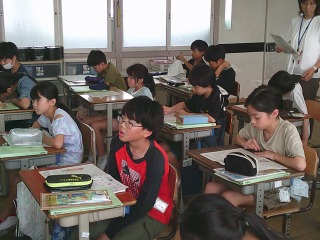 ローマ字で名前を書きながら、小文字の位置に気をつけて書く練習をしていました。5年生になると、文字を扱ったり書いたりすることが少しずつ増えていきます。