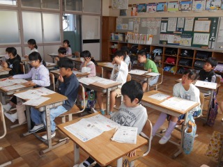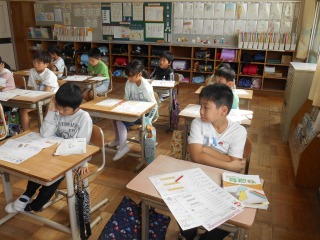 「あまりのあるわりざん」のテストが返ってきました。直しをして、先生が確認をします。