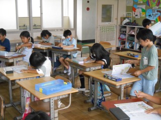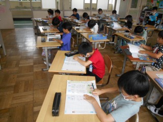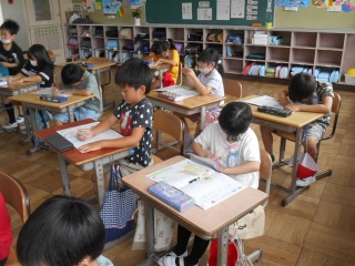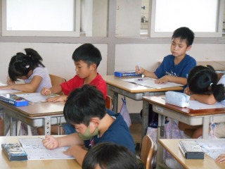 書写ノートに練習し、順番に先生に見てもらっていました。落ち着いて丁寧に書いていました。