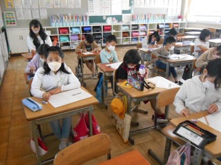 2けたわる1けたのわり算を学習していました。問題を多く解き、基礎を身に付けます。