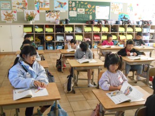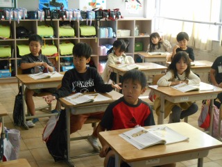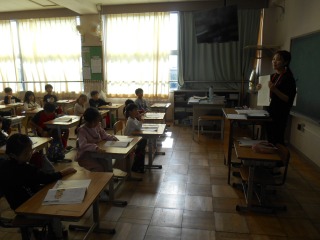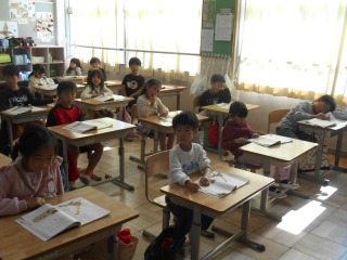 「はたるくるま」を1種類選び、説明文を書きます。ワークシートの説明を聞いているところでした。