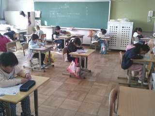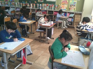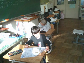 テストに取り組んでいました。学習したことを一生懸命に思い出しながら、解いていました。