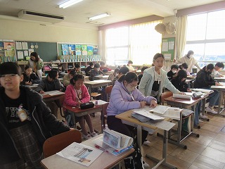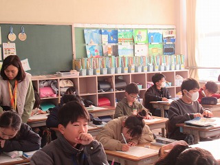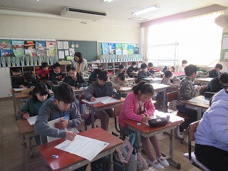 5年2組では、算数の授業が行われていました。問題のやり方をTTの先生にも教えてもらっていました。
