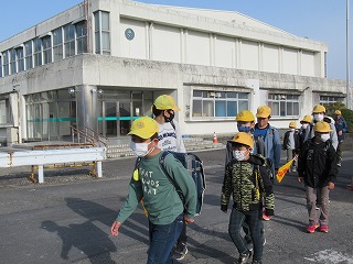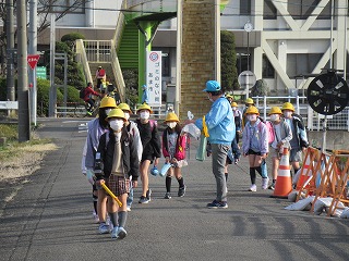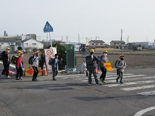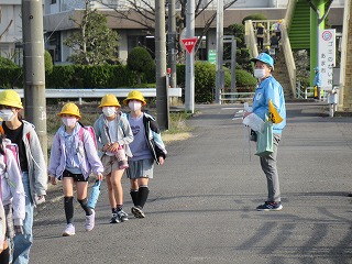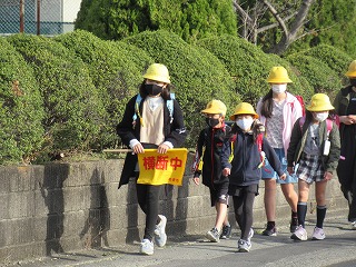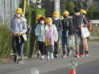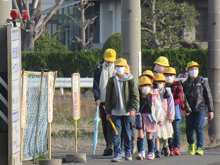北門の通学班の登校の様子です。明日は、卒業式です。6年生と登校するのは、今日で最後です。さみしいですね。