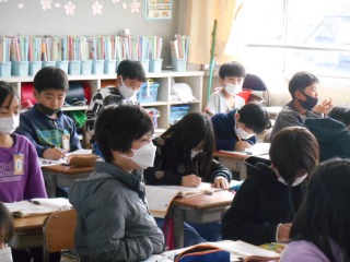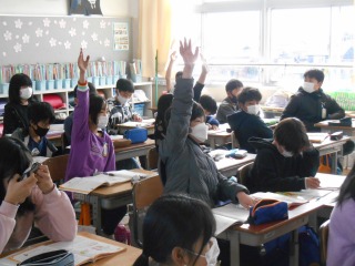 「およその数」を学習していました。大きな数を、どの位で四捨五入するといいか、みんなで意見を出し合っていました。