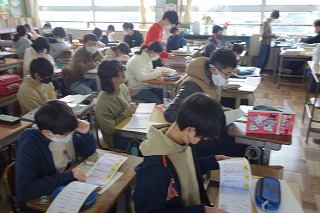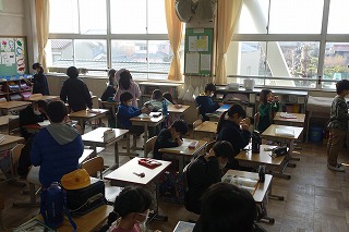 朝の教室では、みなさんが一日の仕度をしたり、連絡帳を書いたりしていました。