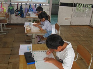 1年1組は、新出漢字の書き取り練習を行っていました。これからどんどん覚える漢字が増えていくので、しっかり覚えていきましょうね。