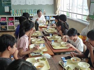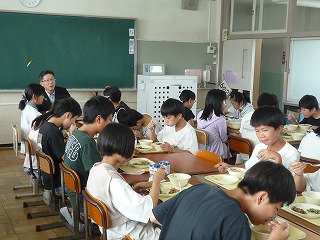 授業後は、一緒に給食も食べてくださり、笑顔あふれるランチタイムとなりました。
