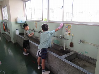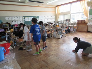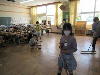 子どもたちは、一生懸命掃除に取り組んでいます。
