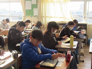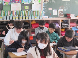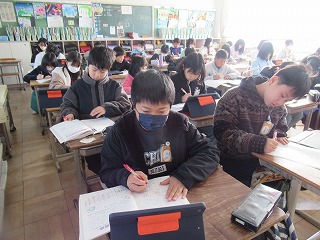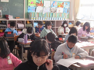 5年1組では、日誌の答え合わせをタブレット端末を使い、行っていました。