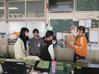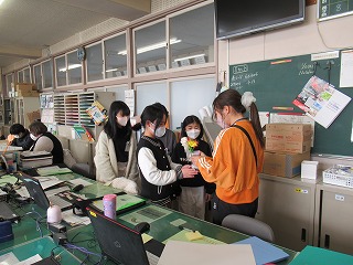 6年生の子どもたちが、お世話になった先生方にプレゼントを作り、感謝のことばとともに先生に手渡ししている様子が見られました。いよいよ卒業ですね。先生方もじーんとしていました。