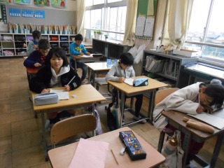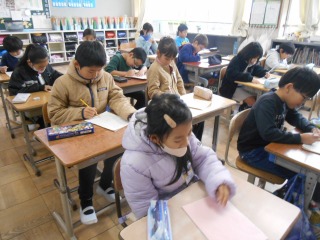 活動後の振り返りの時間でした。活動の感想や、気づいたことをワークシートに書くところでした。