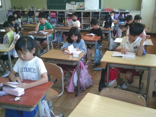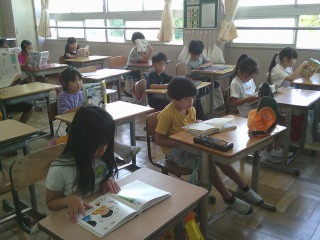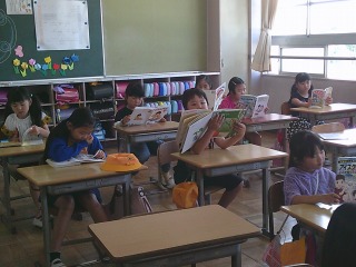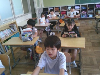 今日は低学年と高学年は読書です。一人一冊、準備をして集中して読んでいました。