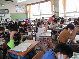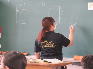 6年2組では、算数の授業が行われていました。体積に関する問題です。みんなしっかり問題に向き合っていました。