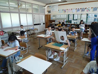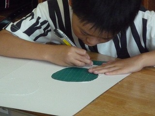 カッターナイフを上手に使い、画用紙を切りぬきました。