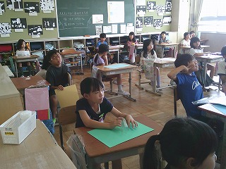 2年2組は図工の時間でした。新しい教材を準備して、これから立体作品を作り始めるところでした。どんな作品が出来上がるのか、完成が楽しみですね。