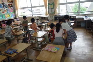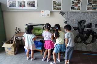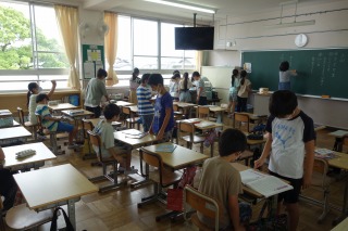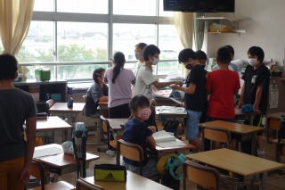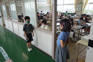 子どもたちは、休み時間に、久しぶりに会った友達と話をしたり、水そうのメダカを見に行ったり、外へ遊びに行ったりして過ごしました。