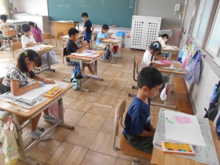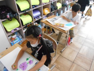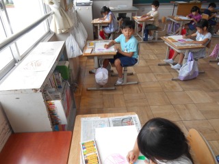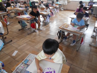 育てている朝顔の絵を描いていました。みんな集中して取り組んでいました。