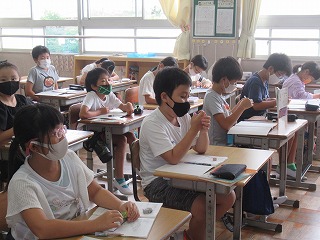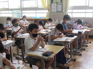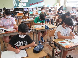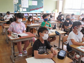 4年2組では、算数の授業が行われていました。体積に学習です。難しい内容ですが、担任の先生も、「これは、5年生につながる大切な勉強だよ」と話をされていました。みんなしっかりがんばってくださいね。