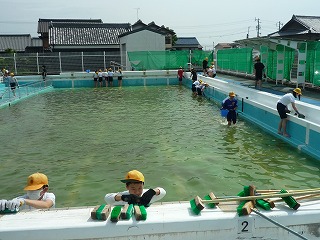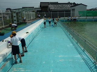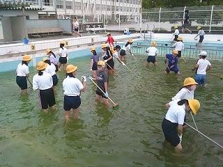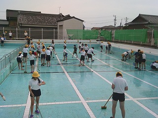 6月10日のプール開きに向けて、6年生がプール清掃を行いました。