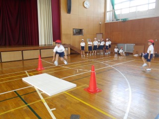 高跳びの練習をしていました。今日は記録を測るため、いつになく一生懸命に練習していました。