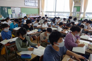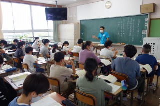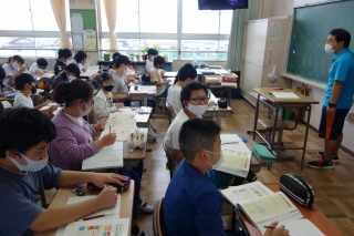 6年1組の国語は『利用案内を読もう』の学習でした。授業の後半には、先生問題にも挑戦しました。